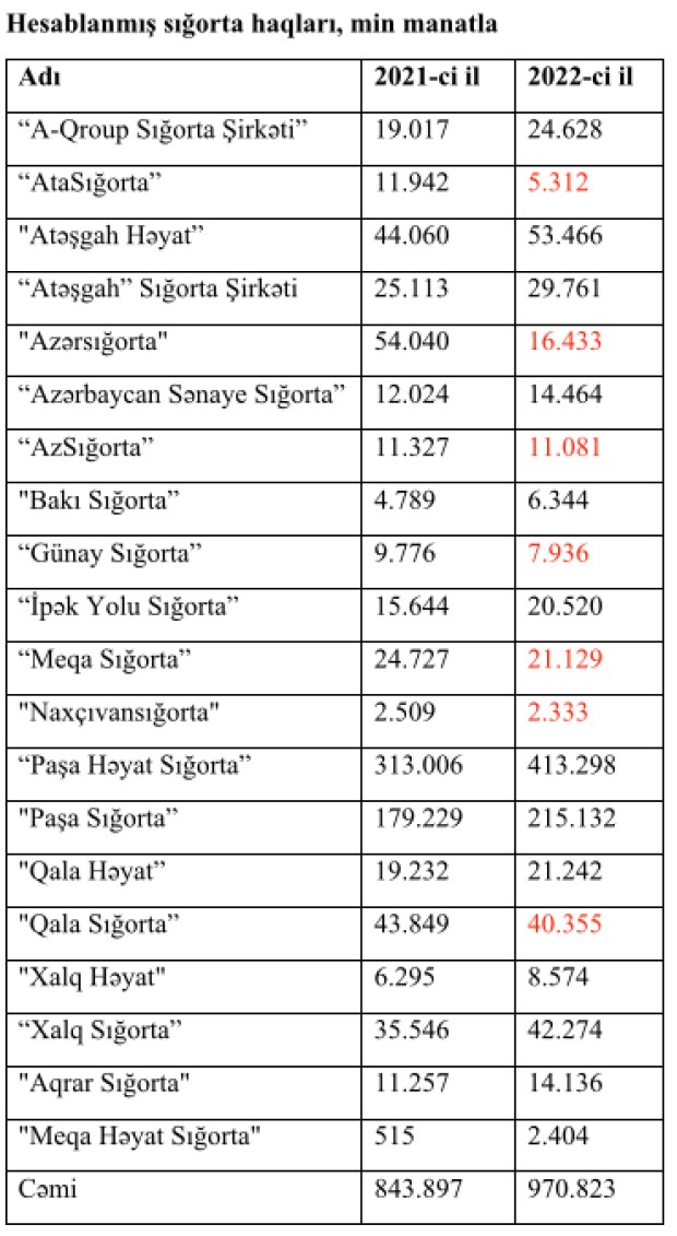 7 sığorta şirkətində geriləmə - SİYAHILAR