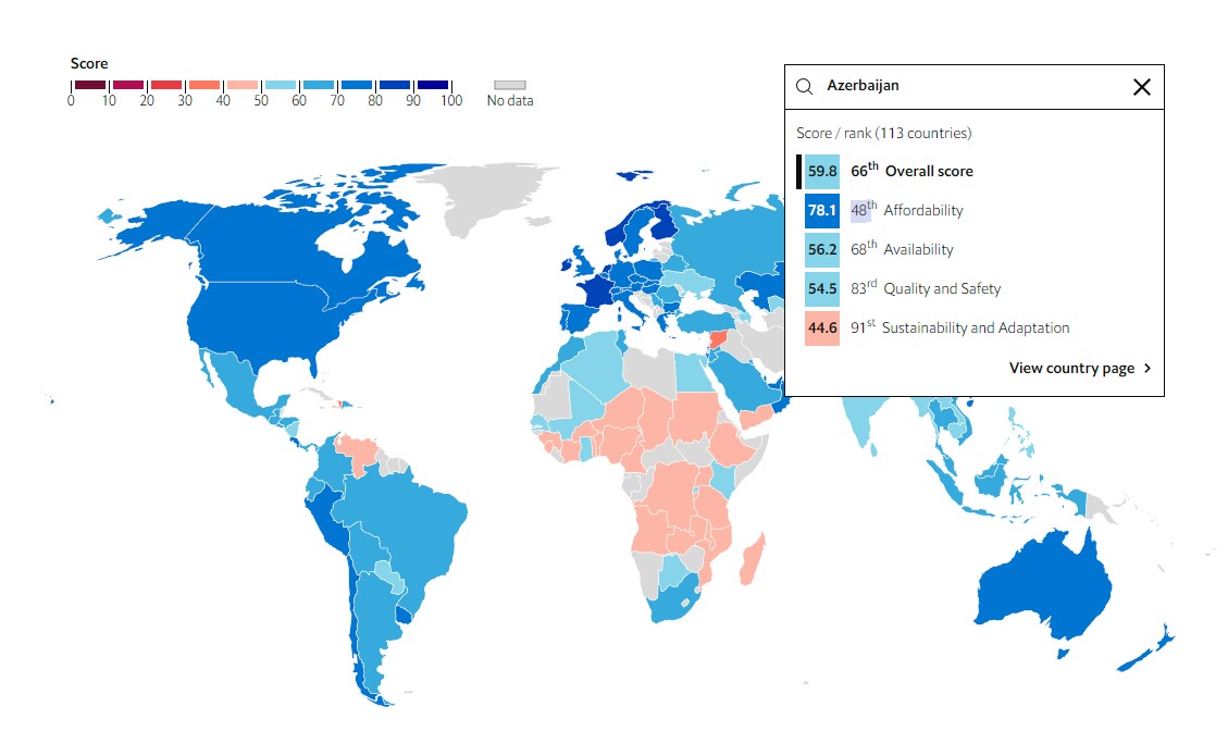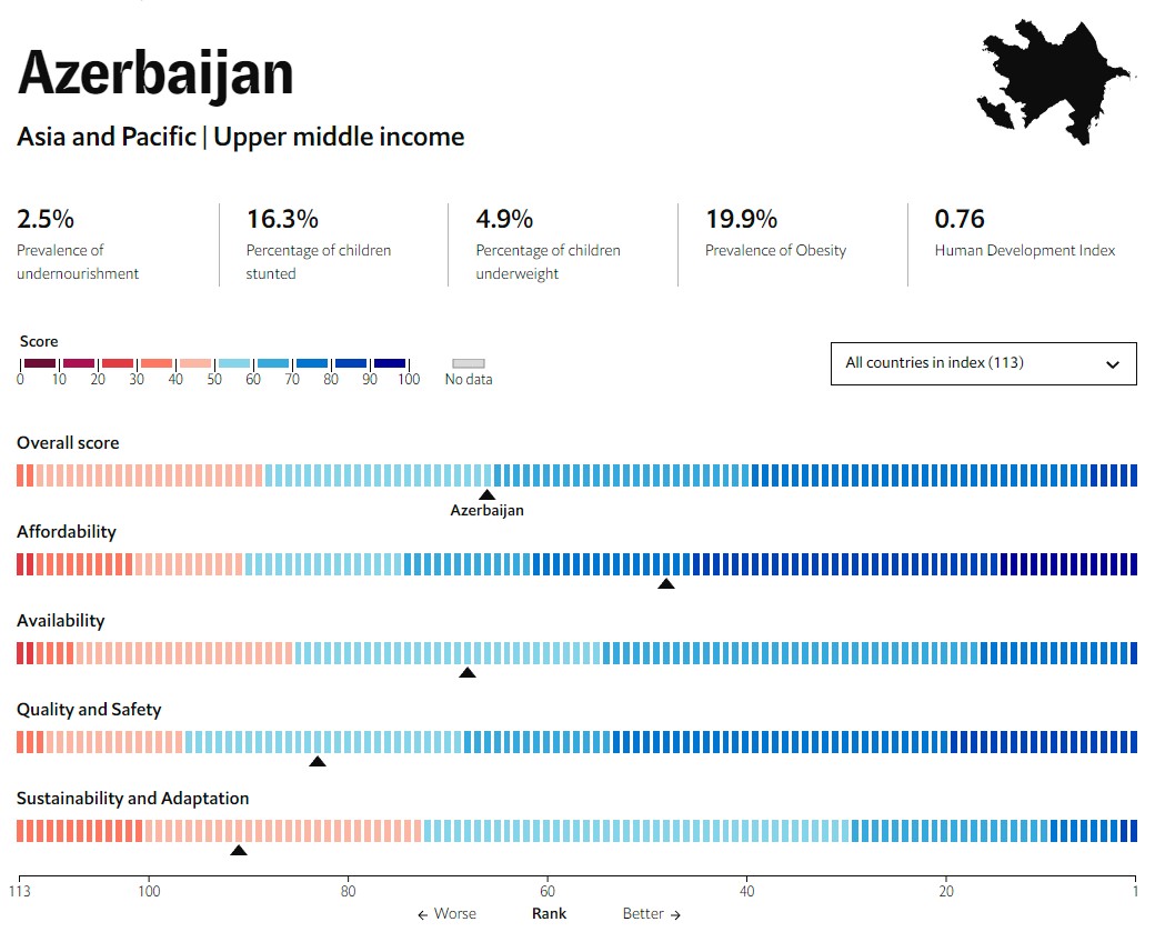 Azərbaycan Qida Təhlükəsizliyi İndeksində 66-cı yerdədir.